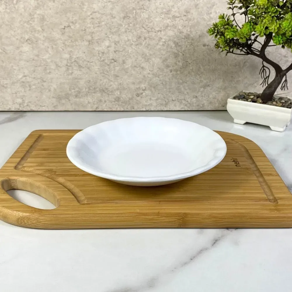 19 cm ölçüsü, günlük ana yemek porsiyonları ve ara sıcaklar için mükemmel boyuttur. Hafif olması sayesinde hem servis eden hem de kullanan için kolaylık sağlar. Bulaşık makinesinde güvenle yıkanabilir, düzenli kullanıma rağmen sararma yapmaz ve parlak görünümünü uzun yıllar korur.