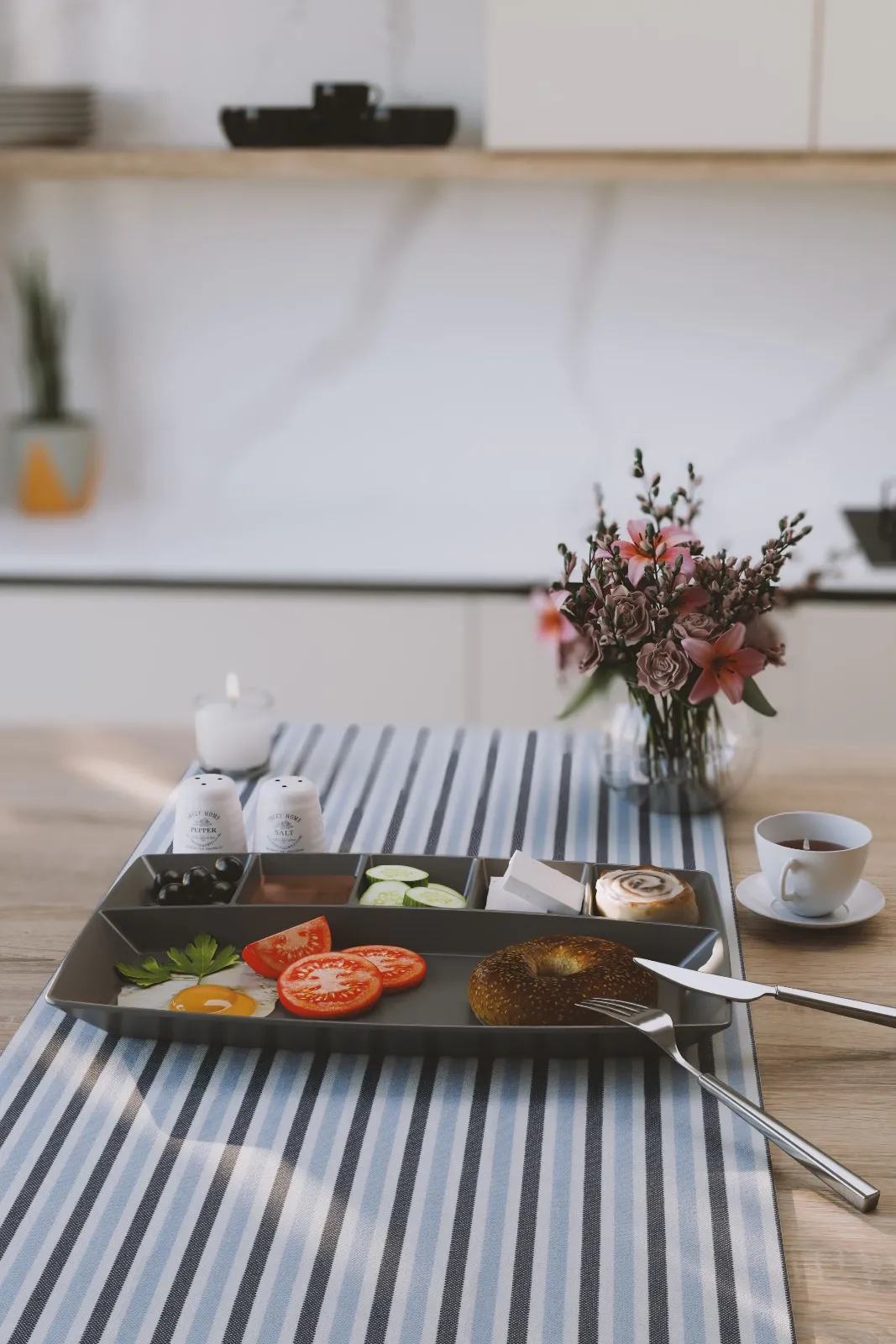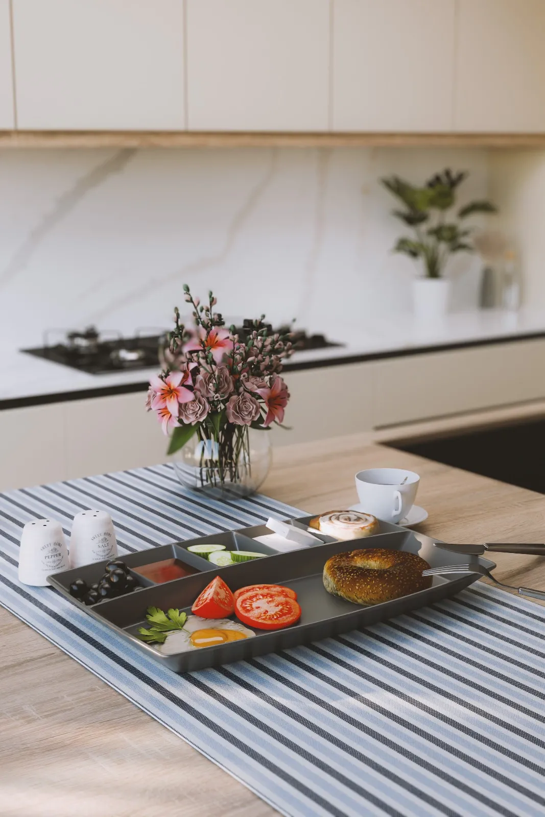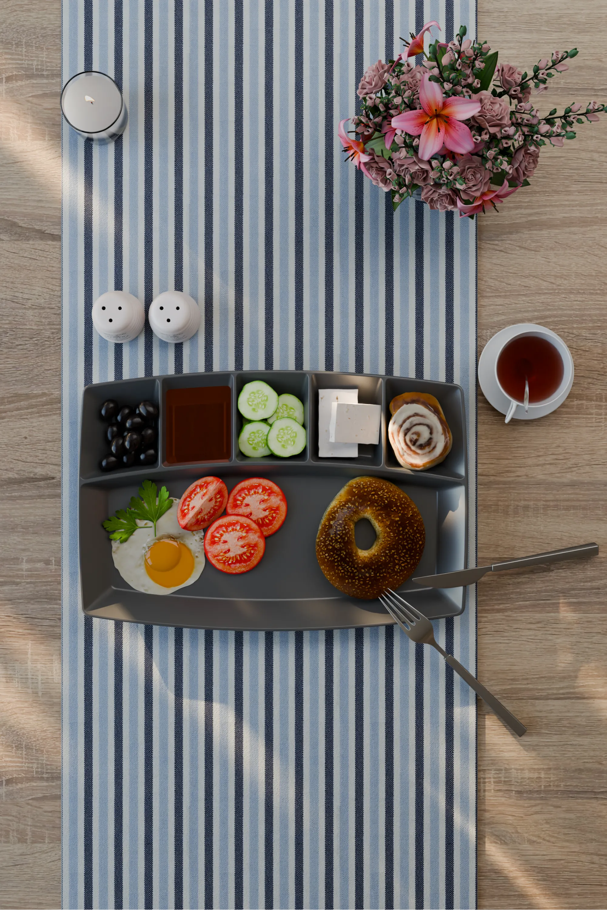 INNOX 6 Bölmeli Polikarbon Kahvaltı Tabağı , 30x20 Cm, Sunum Tabağı, Antrasit
