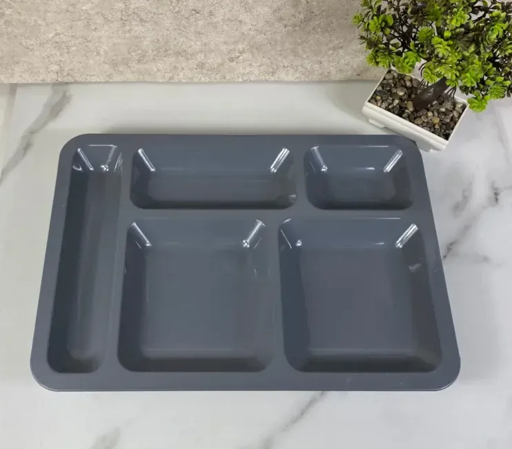 5 Gözlü Bölmeli Yemek Tabağı antrasit renk seçeneği ile yoğun kullanım sonucu oluşan leke, çizik vb. izleri olabildiğince belli etmez.