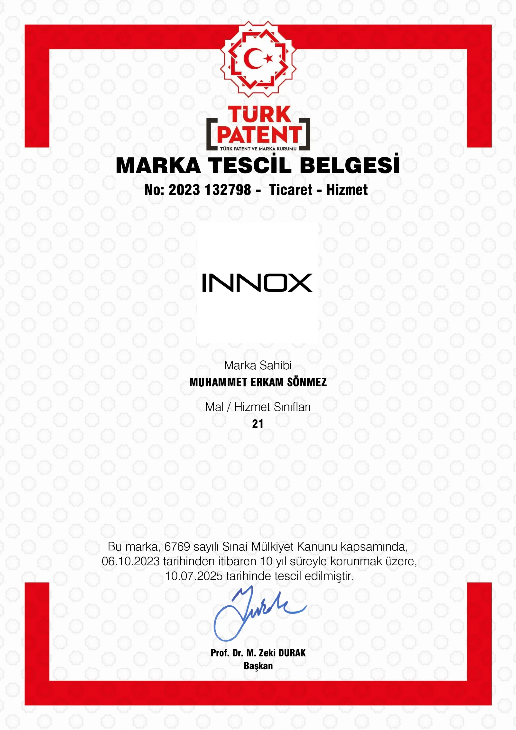 Innox Marka Tescil BelgesiTürk Patent ve Marka Kurumu tarafından onaylı tescil belgemiz.Markalarımız, Türk Patent ve Marka Kurumu nezdinde koruma altındadır. Müşteri memnuniyetini en üst düzeyde tutmak ve orijinal, güvenilir ürünler sunmak temel ilkemizdir.